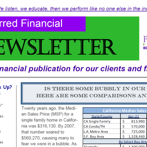 This newsletters covers topics such as the Federal Reserve, Refinance Analysis, Reverse Mortgages, VA Loans and more.